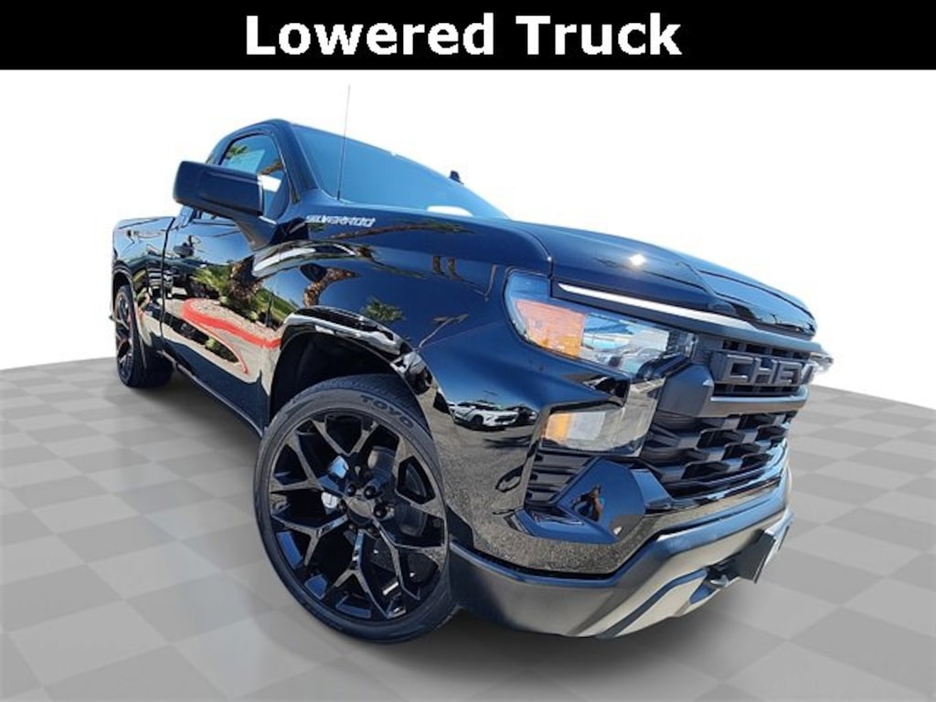 LA QUINTA CUSTOM LOWERED SILVERADO, 24 GLOSS BLACK WHEEL'S ON TOYO TIRES, Black 2025 Chevrolet Silverado 1500 WT 4WD 8-Speed Automatic 2.7L I4 Turbocharged DOHC 16V LEV3-SULEV30 310hp Silverado 1500 WT, 2D Standard Cab, 2.7L I4 Turbocharged DOHC 16V LEV3-SULEV30 310hp, 4WD, Black, Jet Black Vinyl, 40/20/40 Front Split Bench Seat, Black (Semi-Gloss) Front Bumper, Black (Semi-Gloss) Rear Bumper, Chevytec Spray-On Black Bedliner, Vinyl Seat Trim. (+$9,995.00 with installed accessories / equipment)