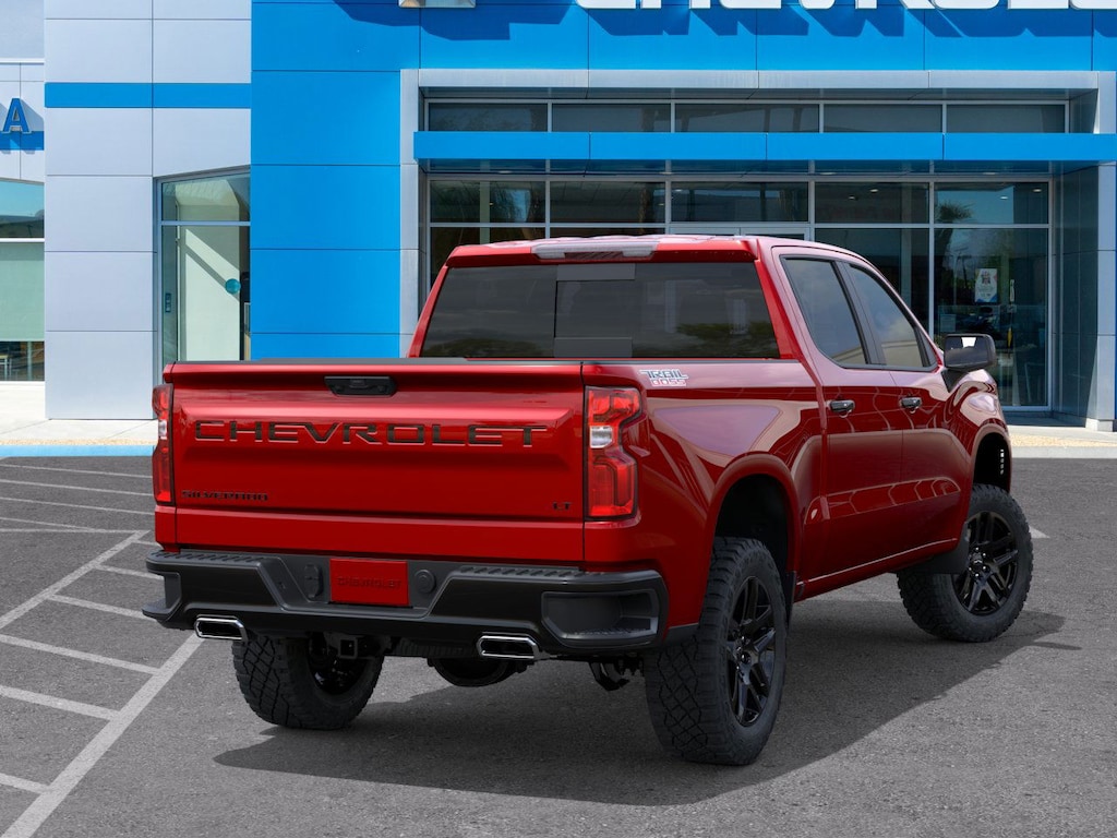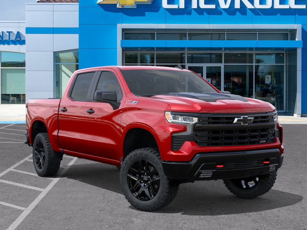 Radiant Red 2026 Chevrolet Silverado 1500 LT Trail Boss 4WD 10-Speed Automatic EcoTec3 5.3L V8 Silverado 1500 LT Trail Boss, EcoTec3 5.3L V8, 10-Speed Automatic, 4WD, Black Cloth, 10-Way Power Driver Seat w/Lumbar, 12.3 Multicolor Reconfigurable Digital Display, 120-Volt Bed Mounted Power Outlet, 120-Volt Interior Power Outlet, 6-Speaker Audio System, All-Weather Floor Liner (LPO) (AAK), Auto-Locking Rear Differential, Black Name Plates (LPO), Bluetooth® For Phone, Chevytec Spray-On Black Bedliner, Color-Keyed Carpeting Floor Covering, Convenience Package, Convenience Package II, Dark Essentials Package (LPO), Deep-Tinted Glass, Dual Rear USB Ports (Charge Only), Dual-Zone Automatic Climate Control, Electric Rear-Window Defogger, Electronic Cruise Control, EZ Lift Power Lock & Release Tailgate, Front dual zone A/C, Front LED Fog Lamps, HD Rear Vision Camera, Heated Driver & Front Outboard Passenger Seats, Heated Power-Adjustable Outside Mirrors, Heated Steering Wheel, Heavy-Duty Air Filter, High Gloss Black Mirror Caps, Hill Descent Control, Hitch Guidance, Hitch Guidance w/Hitch View, In-Vehicle Trailering System App, Inside Rear-View Mirror w/Tilt, Integrated Trailer Brake Controller, Keyless Open & Start, LED Cargo Area Lighting, Manual Tilt/Telescoping Steering Column, OnStar Services Capable, Performance Red Recovery Hooks, Power Front Windows w/Driver Express Up/Down, Power Front Windows w/Passenger Express Down, Power Rear Windows w/Express Down, Power Sliding Rear Window w/Rear Defogger, Preferred Equipment Group 2LT, Premium Bose 7-Speaker Sound System, Protection Package, Rear 60/40 Folding Bench Seat (Folds Up), Rear Wheelhouse Liners, Remote Vehicle Starter System, SiriusXM w/360L Trial Subscription, Standard Tailgate, Steering Wheel Audio Controls, Suspension Package, Teen Driver, Theft Deterrent System (Unauthorized Entry), Tire Pressure Monitoring System, Trailering Package, Universal Home Remote, Wheel Locks (Set of 4) (LPO), Wheels: 20 x 9 High Gloss Black Painted Alum, Wi-Fi Hot Spot Capable, Wrapped Steering Wheel.