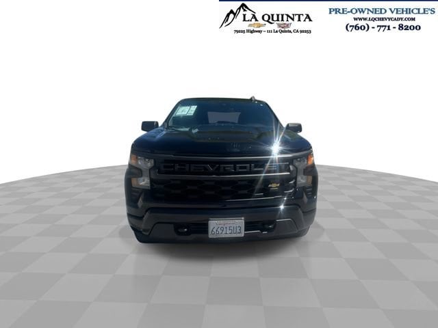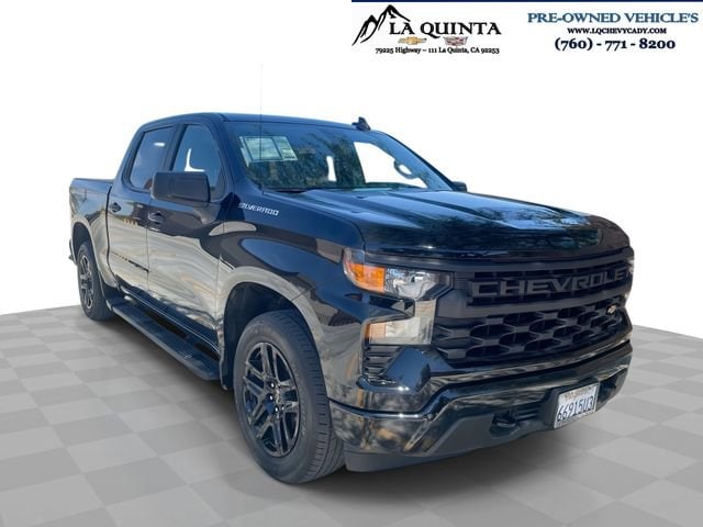 Clean CARFAX. CARFAX One-Owner. Black 2023 Chevrolet Silverado 1500 Custom RWD 8-Speed Automatic 2.7L Turbo Silverado 1500 Custom, 4D Crew Cab, 2.7L Turbo, RWD, Black Cloth, 10-Way Power Driver Seat w/Lumbar, 120-Volt Bed Mounted Power Outlet, 120-Volt Instrument Panel Power Outlet, 3.5 Monochromatic Display Driver Info Center, Bluetooth® For Phone, Chevrolet Connected Access Capable, Color-Keyed Carpeting Floor Covering, Compass, Custom Convenience Package, Custom Value Package, Deep-Tinted Glass, Dual Rear USB Ports (Charge Only), Electric Rear-Window Defogger, Electrical Steering Column Lock, Electronic Cruise Control, EZ Lift Power Lock & Release Tailgate, Front Frame-Mounted Black Recovery Hooks, Front Rubberized Vinyl Floor Mats, HD Rear Vision Camera, High Capacity Suspension Package, Hitch Guidance, LED Cargo Area Lighting, Manual Tilt Wheel Steering Column, OnStar & Chevrolet Connected Services Capable, Power Front Windows w/Driver Express Up/Down, Power Front Windows w/Passenger Express Down, Power Rear Windows w/Express Down, Preferred Equipment Group 1CX, Rear 60/40 Folding Bench Seat (Folds Up), Rear Rubberized-Vinyl Floor Mats, Remote Keyless Entry, Remote Vehicle Starter System, SiriusXM Radio, Standard Tailgate, Theft Deterrent System (Unauthorized Entry), Trailering Package, Wheels: 20 x 9 High Gloss Black Painted Alum, Wi-Fi Hot Spot Capable, Wireless Phone Projection.