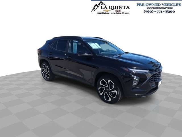 Clean CARFAX. CARFAX One-Owner. Black Metallic 2025 Chevrolet Trax 2RS FWD 6-Speed Automatic 1.2L I3 DI Turbocharged DOHC 12V LEV3-ULEV70 137hp Trax 2RS, 1.2L I3 DI Turbocharged DOHC 12V LEV3-ULEV70 137hp, Black Metallic, Jet Black With Red Accents Premium Synthetic, Adaptive Cruise Control, Driver Confidence Package, Lane Change Alert with Side Blind Zone Alert, License Plate Front Mounting Package, Power Sliding Glass Sunroof with Manual Shade, Preferred Equipment Group 2RS, Rear Cross-Traffic Alert, Rear Park Assist, Sunroof Package, Wheels: 19 Black-Painted Machined Aluminum, Wireless Charging.