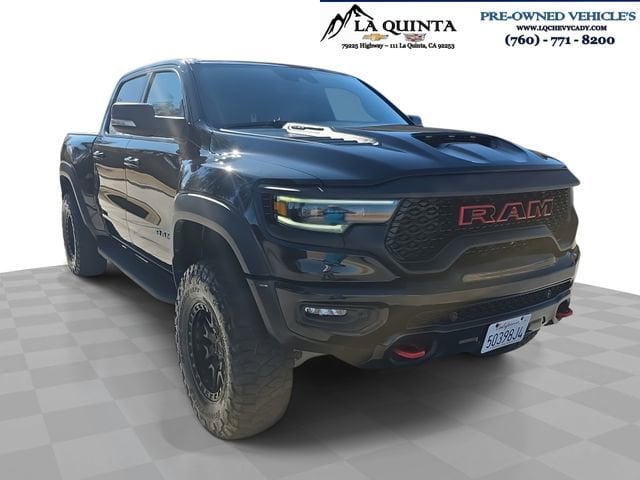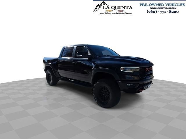 Diamond Black Crystal Pearlcoat 2021 Ram 1500 TRX 4WD 8-Speed Automatic 6.2L Supercharged HEMI V8 SRT 4 Way Front Headrests, Blind Spot & Cross Path Detection, Body Color Door Handles, Bucket Seats, Driver Seat Memory, Driver/Passenger Wrapped Assist Handles, Exterior Mirrors w/Memory, Front Door Accent Lighting, Full Length Premium Upgraded Floor Console, Heated Front Seats, Heated Second Row Seats, Heated Steering Wheel, IP LED Ambient Light Pipe, Leather Trimmed Bucket Seats, Leather/Suede Flat-Bottom Steering Wheel, Luxury Front Door Trim Panel, Navigation System, ParkSense Front/Rear Park Assist w/Stop, Pick-Up Box Lighting, Power 4-Way Driver Lumbar Adjust, Power 4-Way Passenger Lumbar Adjust, Power 8-Way Driver & Passenger Seats, Power Adjustable Pedals w/Memory, Premium Wrapped IP Bezel, Quick Order Package 29Y, Radio/Driver Seat/Mirrors/Pedals Memory, Rain Sensitive Windshield Wipers, Rear 60/40 Folding Split Recline Seat, Rear Door Accent Lighting, Rear Underseat Compartment Storage, Rear Window Defroster, Remote Proximity Keyless Entry, Remote Start System, Remote Tailgate Release, Sun Visors w/Illuminated Vanity Mirrors, Surround View Camera System, Trailer Brake Control, TRX Level 2 Equipment Group, Universal Garage Door Opener, Ventilated Front Seats, Ventilated Rear Seats, Wheels: 18 x 9 Black Paint/Polish Aluminum, Wireless Charging Pad.
